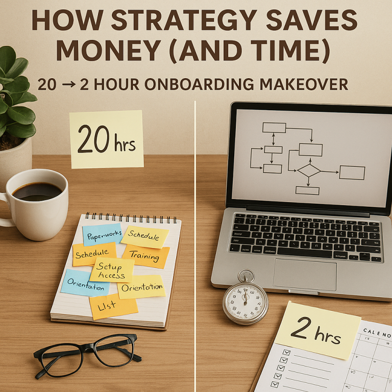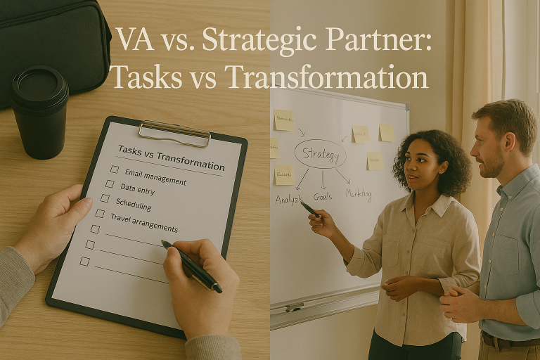 A great Virtual Assistant (VA) gets tasks done. A Strategic Partner designs how work happens—so the same task takes 5 minutes next week instead of 45 today.