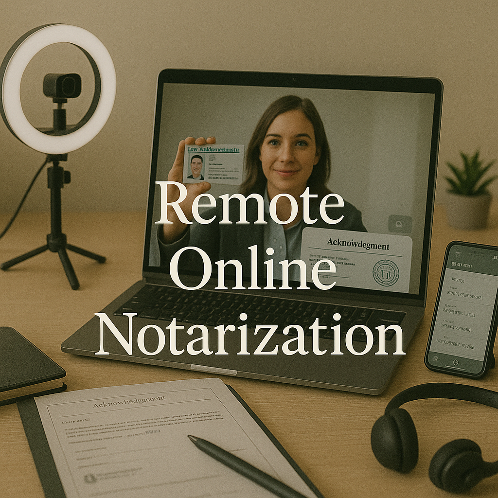 Get documents notarized via a secure audio-video session—nationwide, in jurisdictions that allow RON (currently 47 states + D.C.). You’ll need a valid government ID, webcam, and stable internet; I handle identity proofing and deliver a digitally sealed copy right away. - Mobile Notary (from $35)